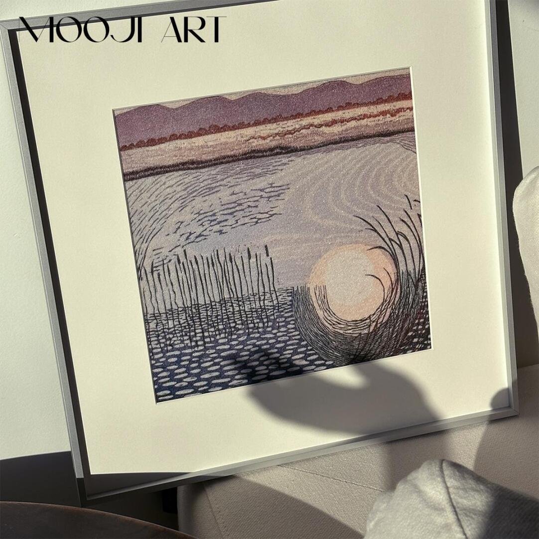 Morning to Evening Mu Ji Modern Minimalist Art Decorative Painting, Three-Dimensional Sandstone Texture, Wall Art for Living Room, Bedroom, or Headboard.