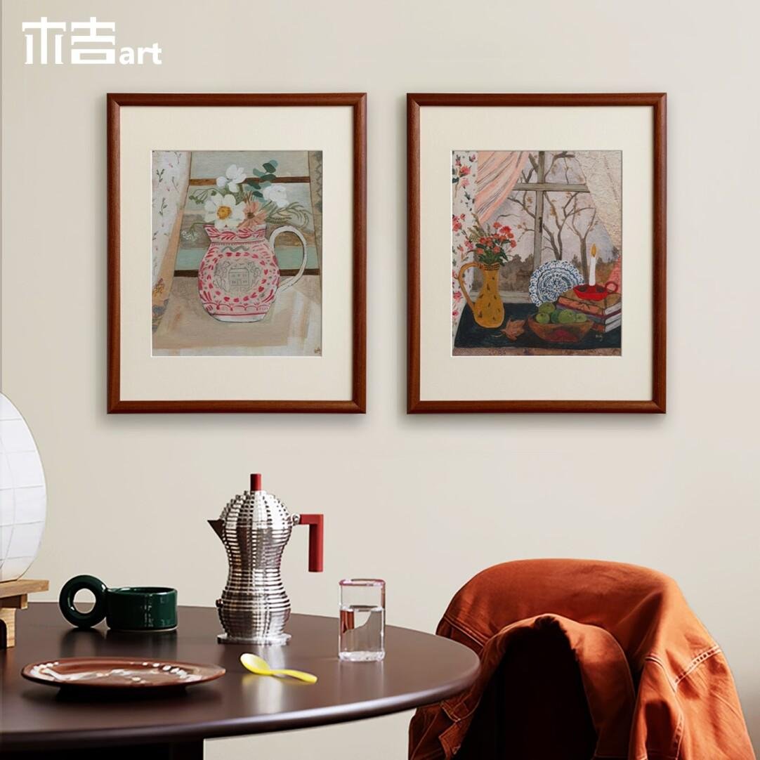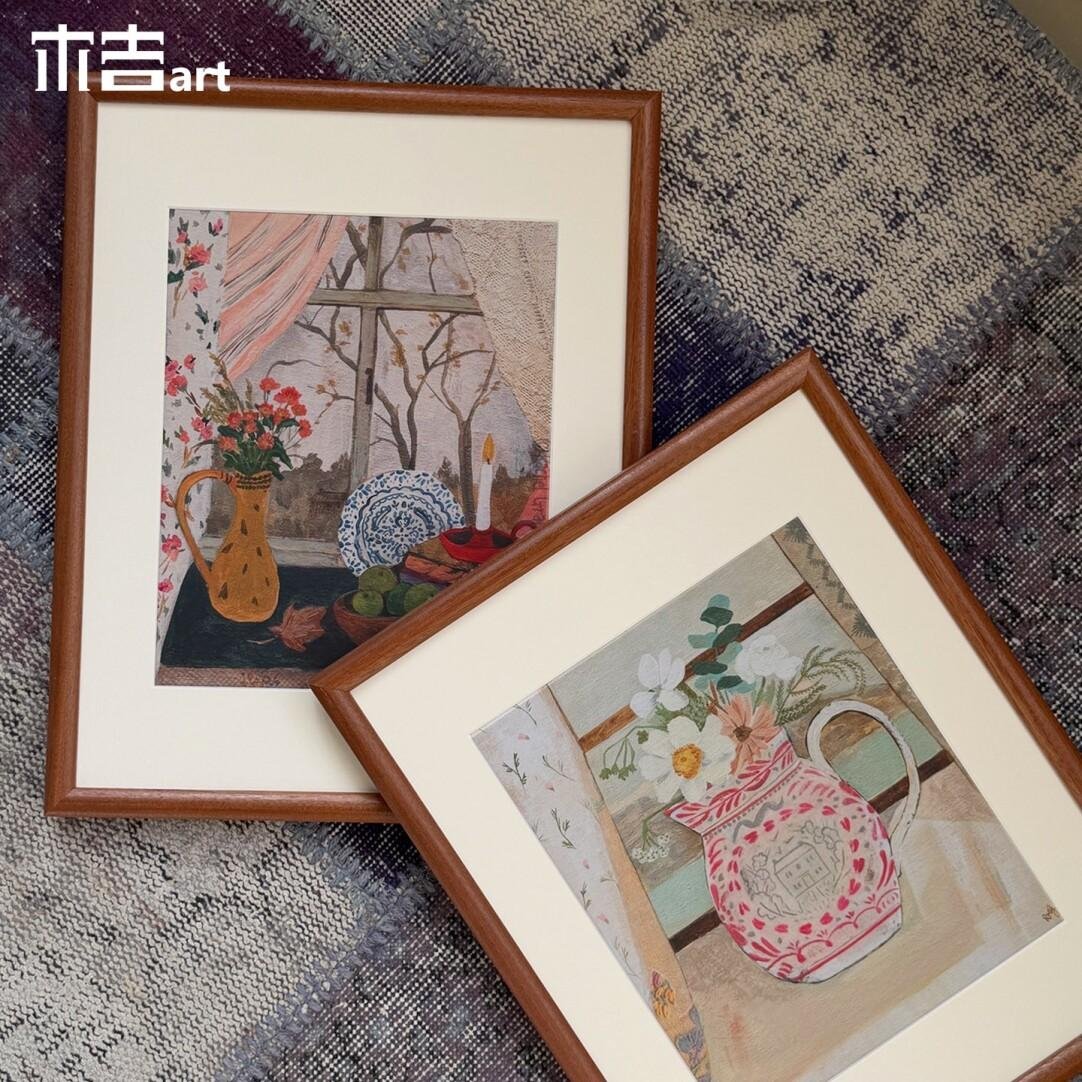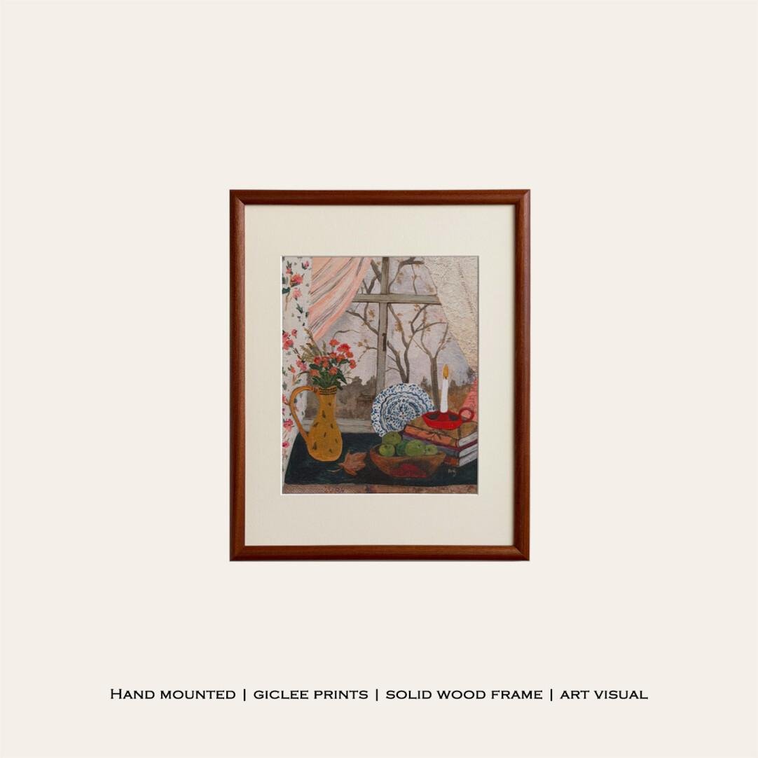 Wooden Frame Window Narrative Retro Style Abstract Still Life Decorative Painting, Living Room Bedroom Wall Art, High-End Genuine Wood Frame Painting, Dining Room Art.