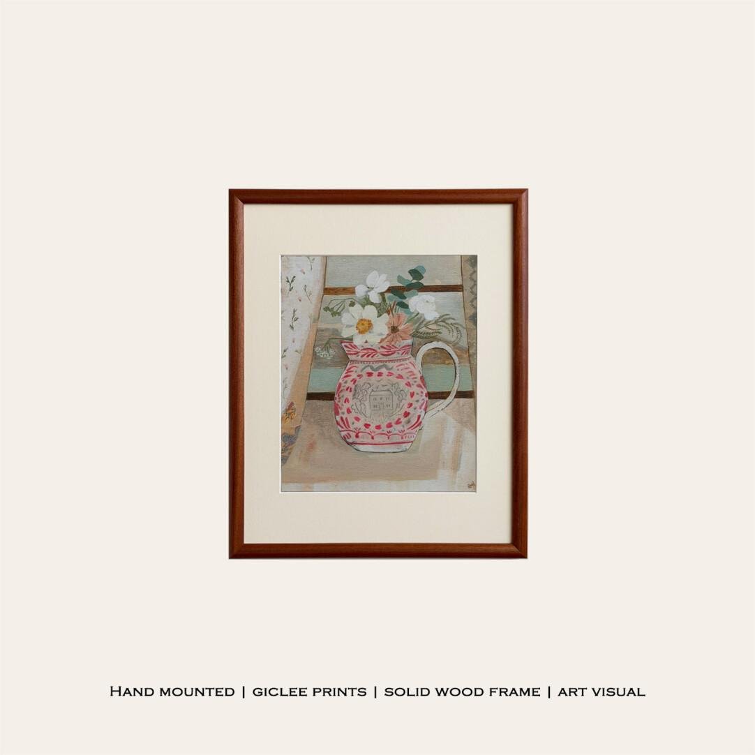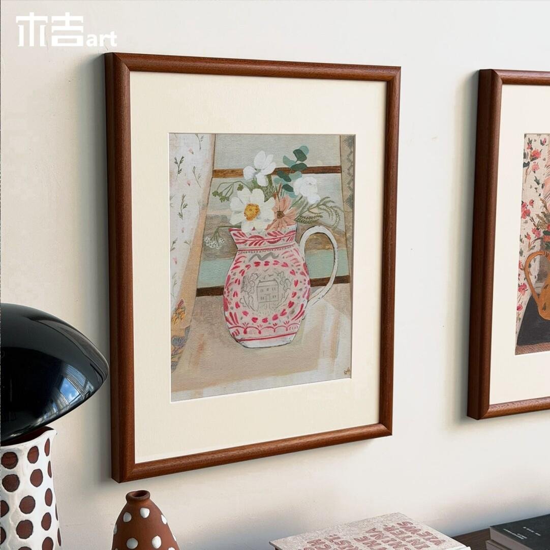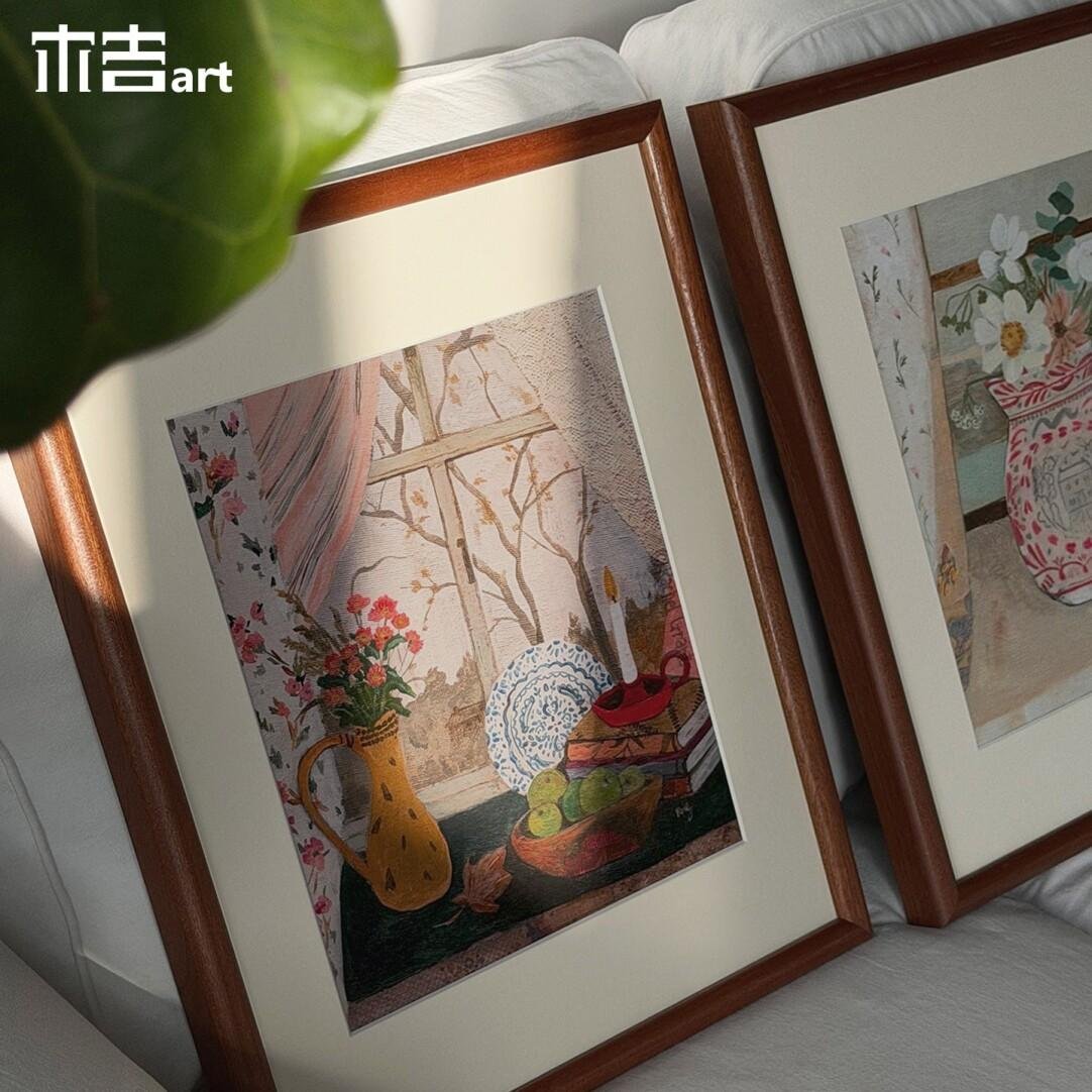 Wooden Frame Window Narrative Retro Style Abstract Still Life Decorative Painting, Living Room Bedroom Wall Art, High-End Genuine Wood Frame Painting, Dining Room Art.